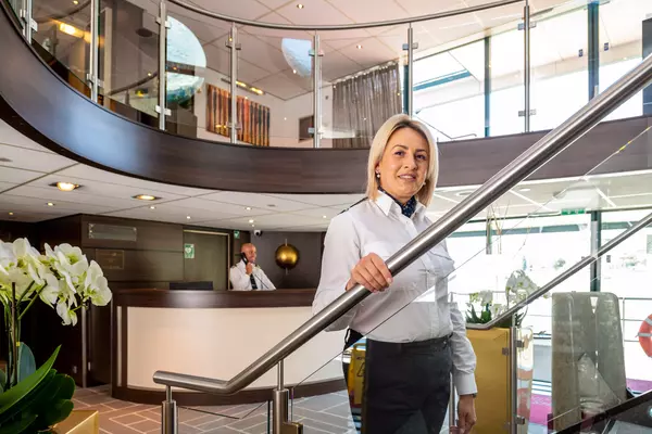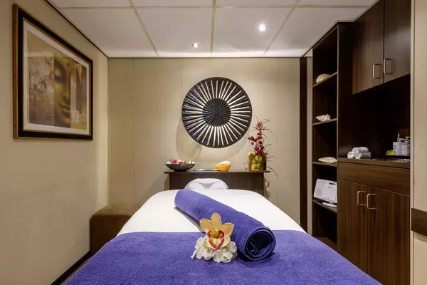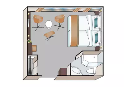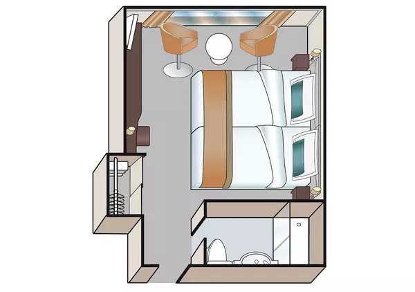 Each cabin features a generous bathroom with a shower, premium Rituals® bathing products, and a hair dryer, along with a fixed panoramic window that fills the space with natural light. Thoughtful touches like a comfortable double or twin bed, ample clost space, secure in-room safe, flat-screen TV, individual climate control, and direct dial telephone were designed to offer you both comfort and convenience throughout your stay.