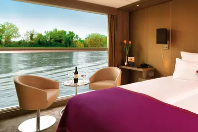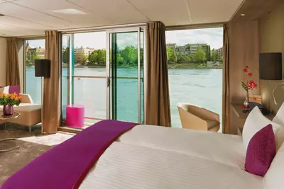 These staterooms feature the AMADEUS Signature Bed (available as a double or twin), a drop-down panoramic window for uninterrupted river views, a spacious bathroom with a walk-in shower and premium Rituals® bathing products, walk-in wardrobe, flat-screen TV, individual climate control, in-room safe, hair dryer, well-stocked minibar, and direct dial telephone — ensuring a comfortable and refined travel experience.