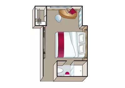 Each cabin features a spacious bathroom with a walk-in shower, luxurious Rituals bath products, and a hair dryer, along with a fixed panoramic window that fills the space with natural light. Thoughtful touches like a comfortable double or twin bed, generously-sized wardrobe, secure in-room safe, flat-screen TV, individual climate control and direct dial telephone ensure a restful and well-equipped stay.