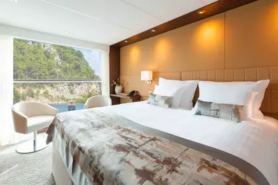 These staterooms feature the AMADEUS Signature Bed (available as a double or twin), a drop-down panoramic window for uninterrupted river views, a spacious bathroom with a walk-in shower and premium Rituals® bathing products, walk-in wardrobe, flat-screen TV, individual climate control, well-stocked minibar, in-room safe, hair dryer, and direct dial telephone — ensuring a comfortable and refined travel experience.